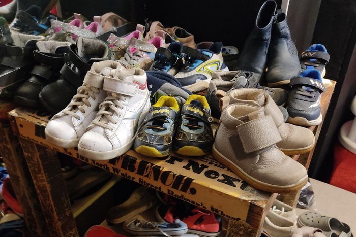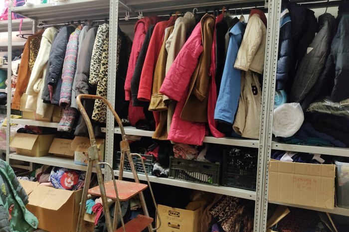 Петербуржцы сняли небольшое помещение на территории бывшей фабрики «Скороход» рядом со станцией метро «Московские ворота». Там они собирают вещи, необходимые тем, кому пришлось бежать из своих домов на оккупированных территориях и в зоне боевых действий, — одежду, обувь, постельное белье, школьные принадлежности и многое другое.