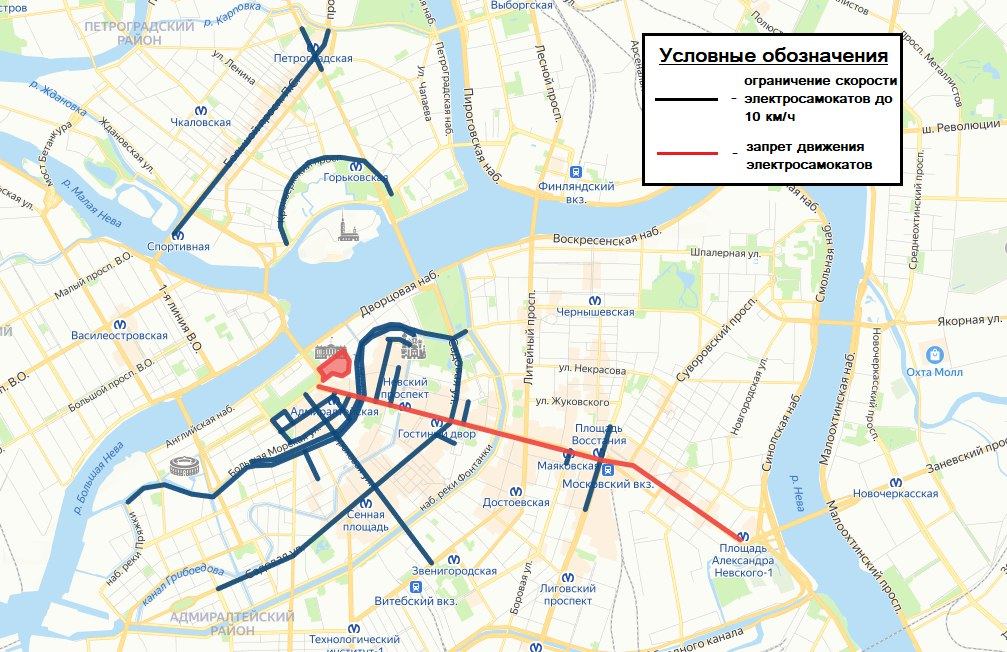 Власти Петербурга запретят электросамокатам ездить по Невскому и Дворцовой. Показываем карту ограничений